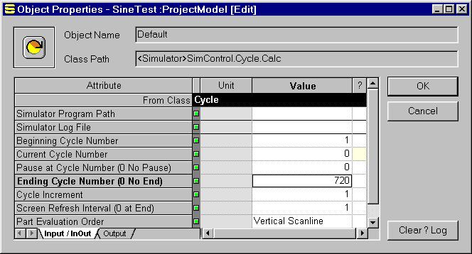 The cycle defined in the simulation control object indicates how many times the parts in the system are gone through, not the circular cycle in mathematics. Double click on the SimControl.Cycle.Calc_Default object in the Tree View of the Object tab (the first tab) to obtain an Object Properties dialog as following: