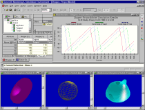 In this example, we explore the new interactive 3D graphics features in the SansGUI Modeling and Simulation Environment and demonstrate how SansGUI supports OpenGL® graphics programming directly in Microsoft Visual C++ and Compaq Visual Fortran. With the solid foundation built in the SansGUI architecture, we introduced a new reference class, Graphics, that is capable of displaying 3-dimensional graphic objects using the OpenGL® Application Programming Interface (API), the industry standard for 3D graphics programming. As a simulation developer, you can use the OpenGL API directly in your simulation code, no additional layer of API is introduced by SansGUI. All the interactive user interface features, such as 3D object translation, rotation, zooming, and user selections, are handled by SansGUI, which packs these information in SansGUI data objects and passes them to your simulation routines.