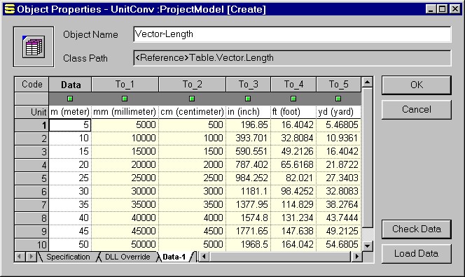 of the columns. In addition to entering the data manually, the Load Data button can be programmed to